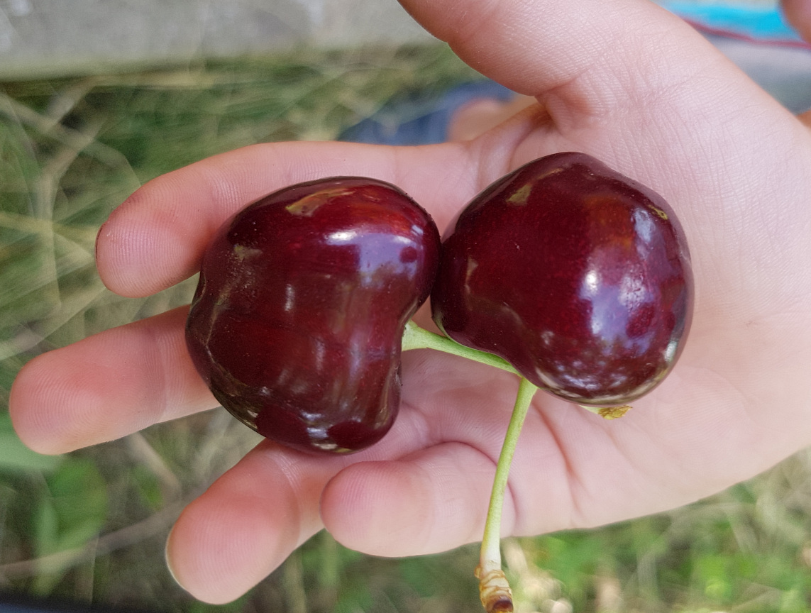Посадил саженец этой черешни весной. Честно, не ожидал, что так хорошо приживётся. Уже в первый сезон появилось несколько ягод. Очень удивило, что они реально крупные, намного больше обычной черешни.