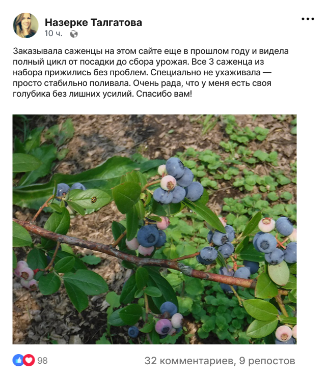 Вы получите полностью готовые к посадке саженцы голубики, нужно лишь заказать