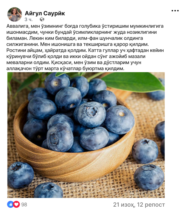 Голубика бум - сизнинг участкангизда сувли мевалар ўстиринг!