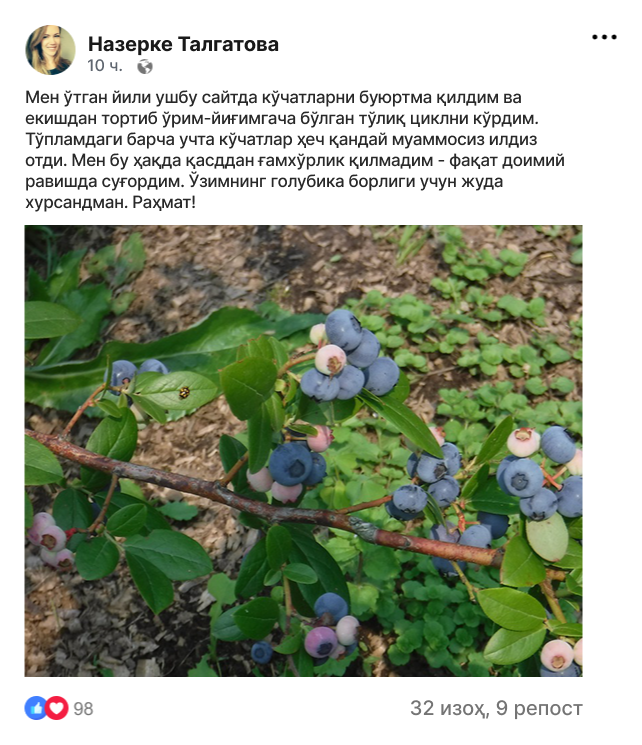 Голубика кўчатларини супер нархда буюртма беринг