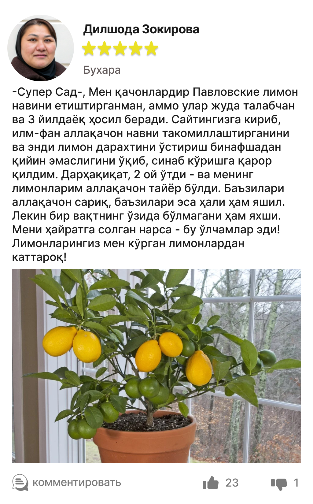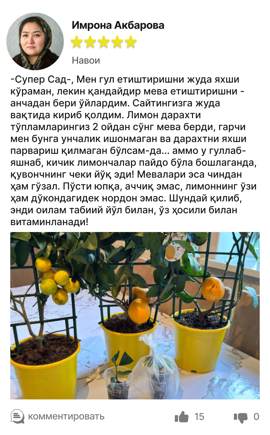 "Супер Сад" кўчатхонасидан уй шароитида етиштириш учун лимонлар: