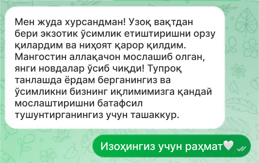 Нима учун бизнинг мангостин кўчатларимиз танланади