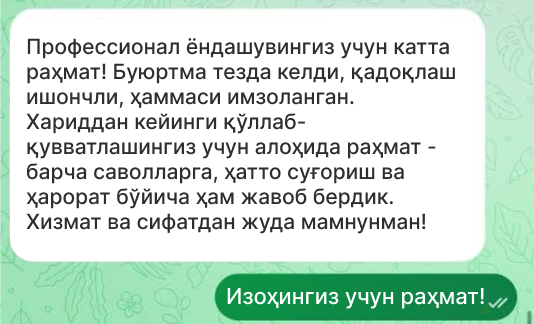 ✔ Ўзбекистон бўйлаб етказиб бериш