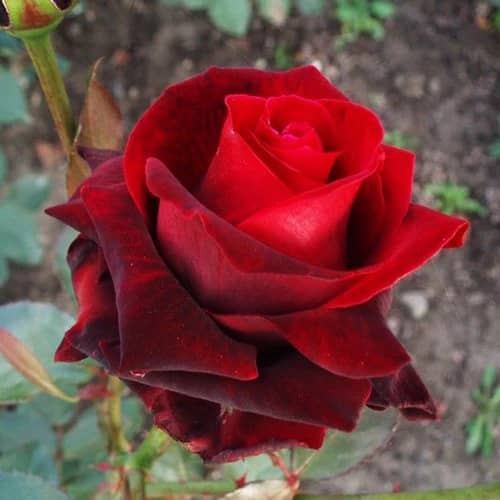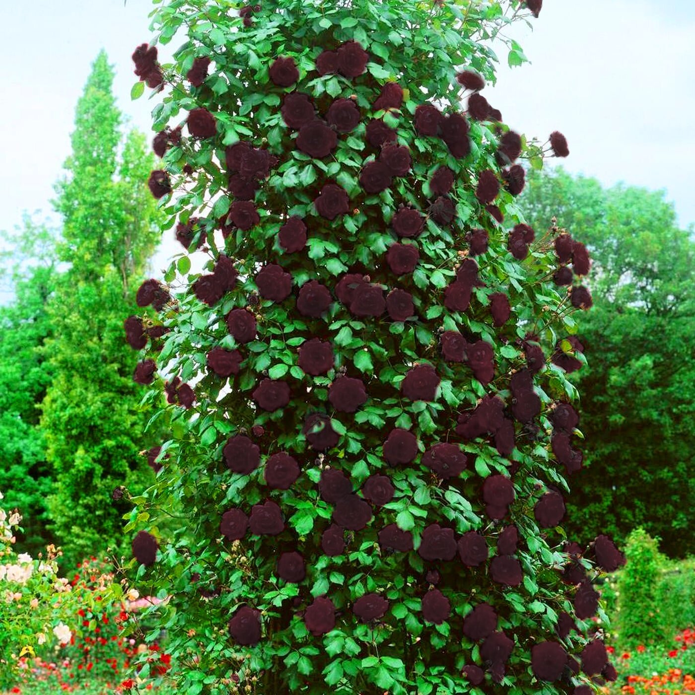 Сажанец розы "Черный Принц" (Black Prince) представляет собой плетистую розу с великолепными почти черными бархатистыми цветками. В жаркую погоду цветы становятся темно-красными, но на кислых почвах этот сорт приобретает истинно черный оттенок. Цветок чашевидный, плотный, густомахровый (45 лепестков) с заостренными и угловатыми кончиками лепестков. Аромат насыщенный и сильный, как у большинства старинных роз. Листва зеленая с легким красноватым отливом. Этот сорт практически не имеет шипов. Черный Принц лучше всего чувствует себя в полутени, где его бархатисто-черные оттенки проявляются максимально. Срезанные цветы долго не вянут и радуют своим видом окружающих.